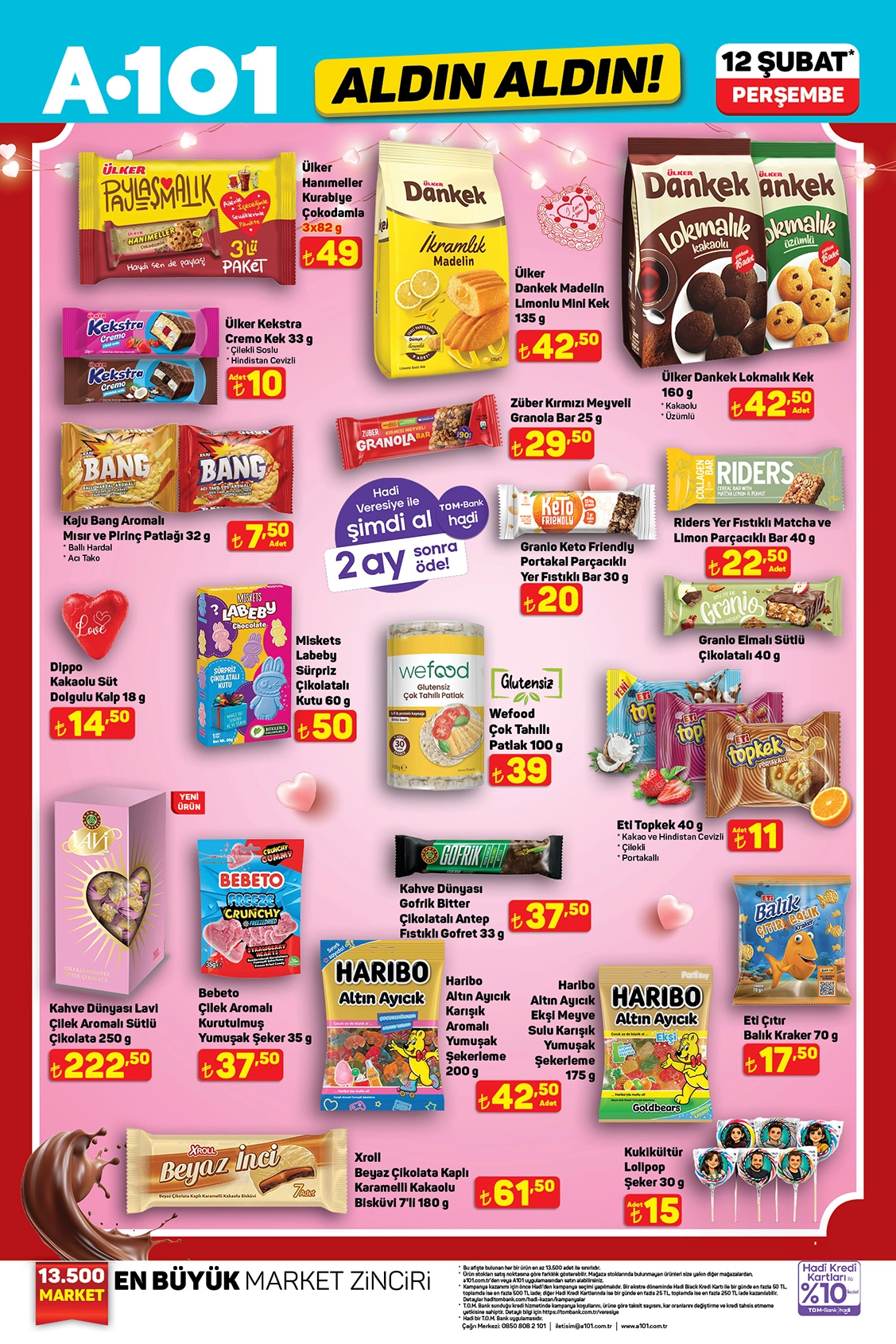 A101 mağazalarında gerçekleştirilen alışverişlerde TOM Bank Hadi kullanıcılarına sunulan güncel kampanya avantajları ve öne çıkan marka listesi