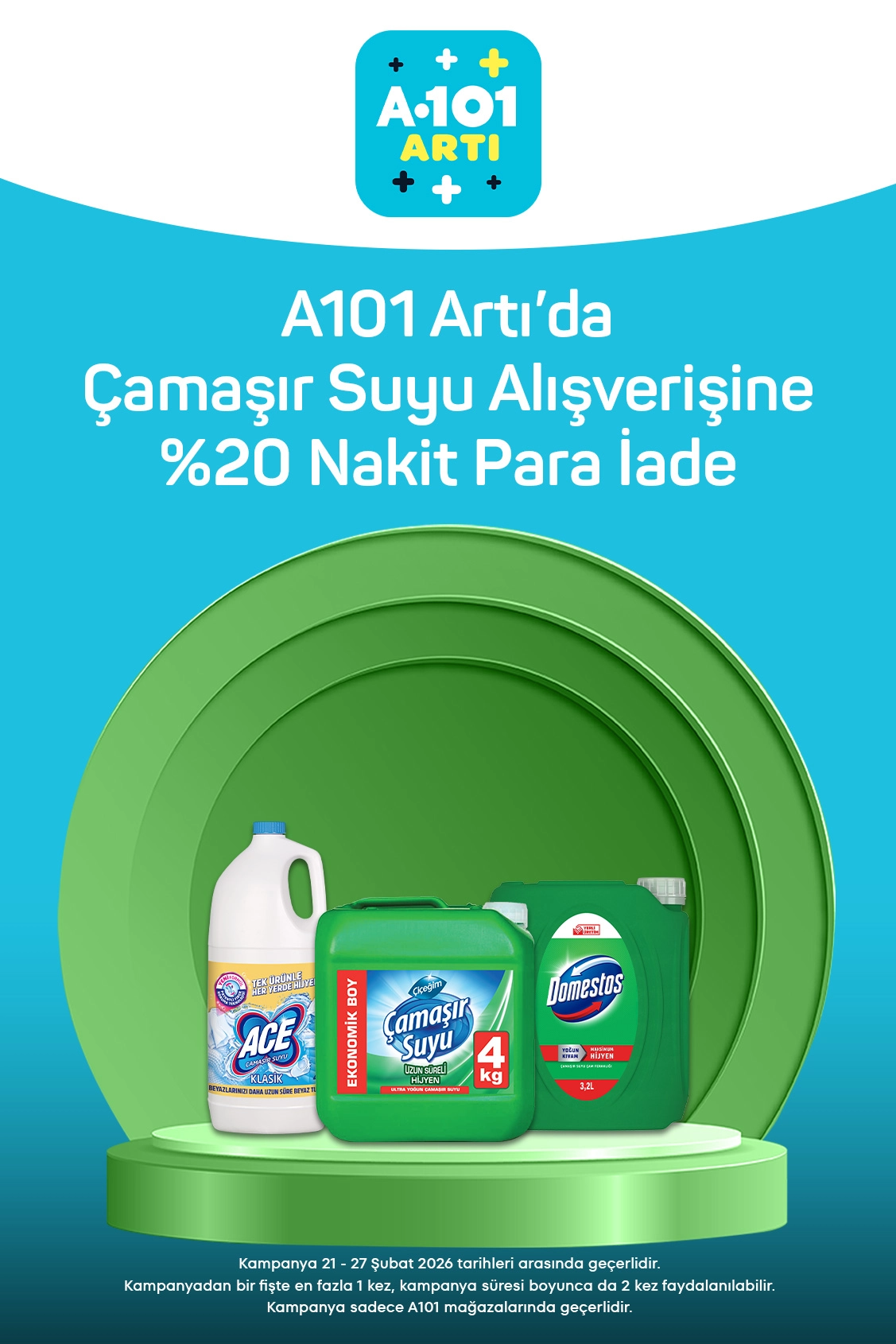 - Kampanya Koşulları: Tek fişte en fazla 1, kampanya süresince ise toplamda 2 kez iade kazanılabilir. Kampanya yalnızca A101 fiziksel mağazalarında geçerlidir.