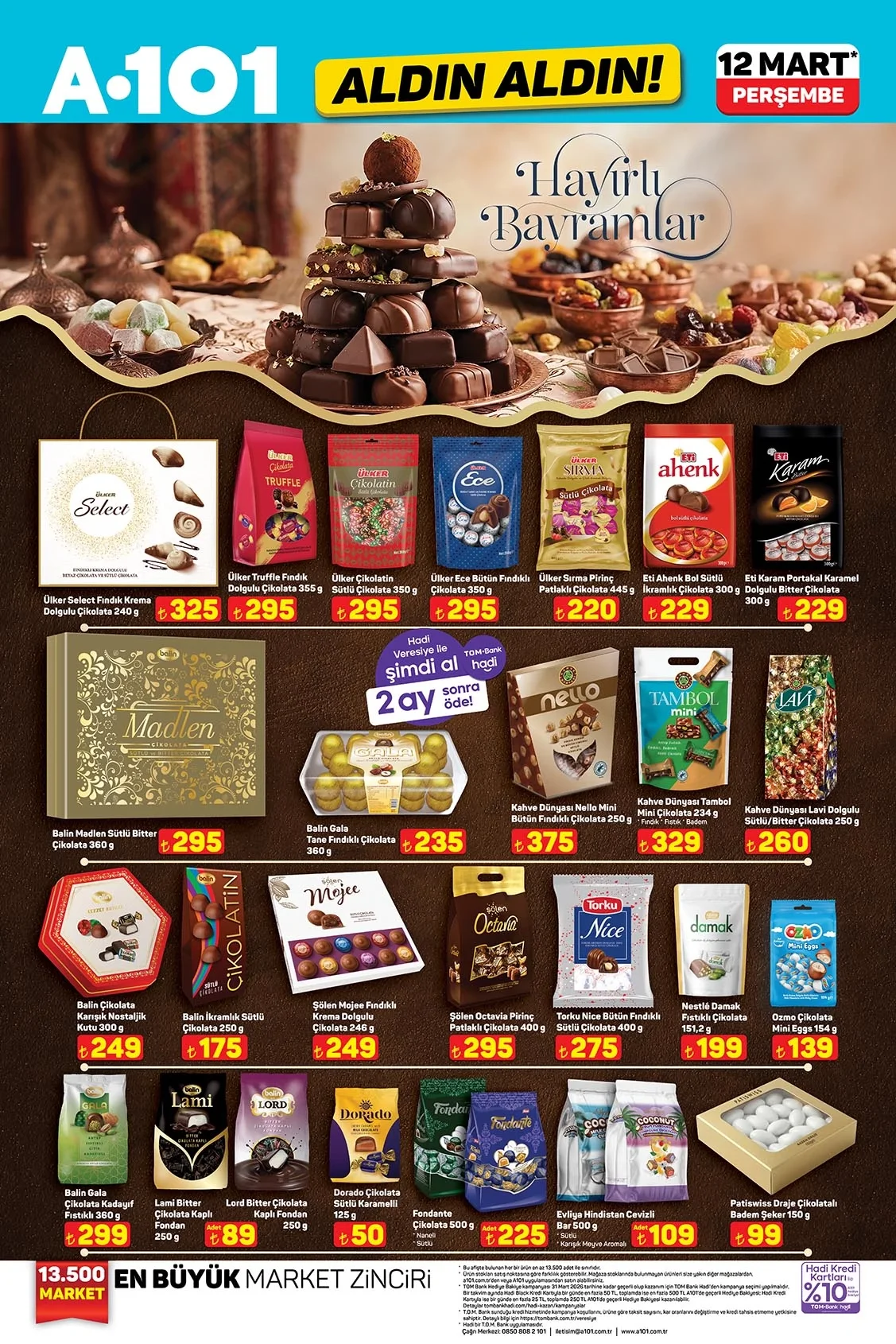 Editörün Notu: Bayram alışverişinizi son güne bırakmamanızı öneririz. Özellikle Kent ve Ülker gibi popüler markaların ürünleri stoklarla sınırlı olduğu için hızla tükenebiliyor. Ayrıca Hadi Kart kullanarak yapacağınız alışverişlerde ekstra nakit iade (cashback) kazanabileceğinizi ve bazı ürünlerde %10'a varan indirim avantajlarından faydalanabileceğinizi unutmayın. 12 Mart'tan itibaren size en yakın A101 mağazasına uğrayarak bu tatlı fırsatları yakalayabilirsiniz!