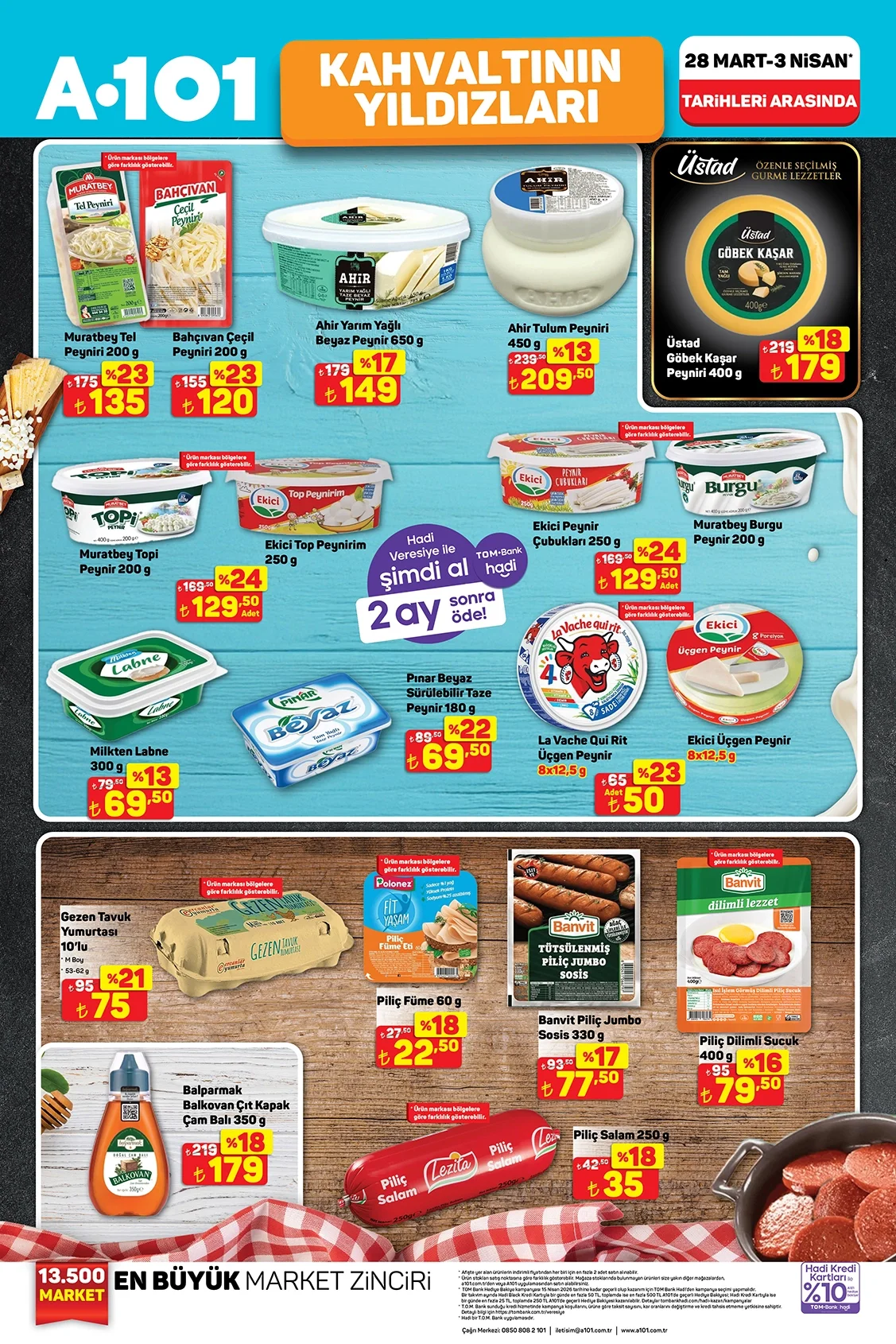 A101 market zinciri, 28 Mart ile 3 Nisan tarihleri arasında geçerli olacak yeni indirimli ürünler listesini duyurdu. Bu haftanın öne çıkan teması "Kahvaltının Yıldızları" olurken, özellikle şarküteri ve süt ürünleri grubunda ciddi fiyat avantajları göze çarpıyor. Mutfak alışverişini ekonomik hale getirmek isteyenler için temel gıda maddelerindeki bu değişimleri yakından inceledik.