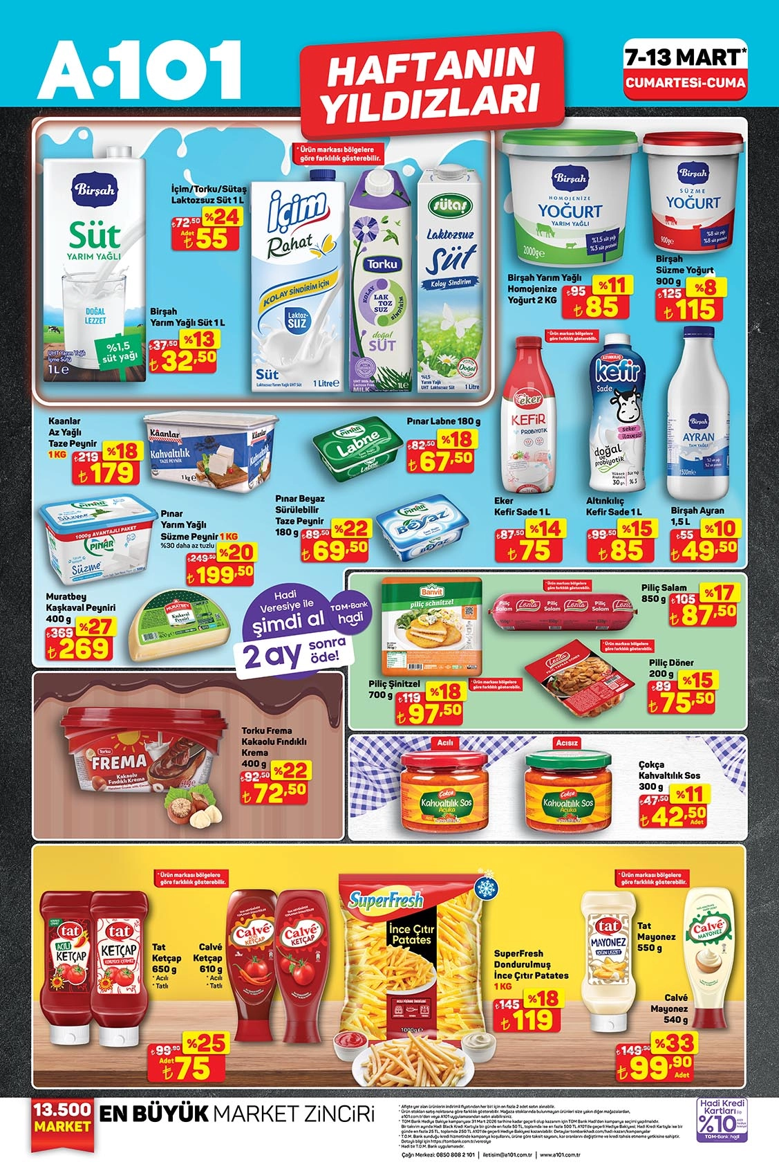 Ekonomik alışverişin adresi A101, 7-13 Mart tarihleri arasında geçerli olacak yeni "Haftanın Yıldızları" kataloğunu yayınladı. Mutfak masraflarını hafifletmek isteyen tüketiciler için hazırlanan bu listede, temel gıda ürünlerinden dondurulmuş gıdalara kadar pek çok üründe ciddi fiyat avantajları göze çarpıyor. Özellikle süt ve süt ürünlerindeki indirimler, stok yapmak isteyenler için kaçırılmayacak fırsatlar sunuyor.