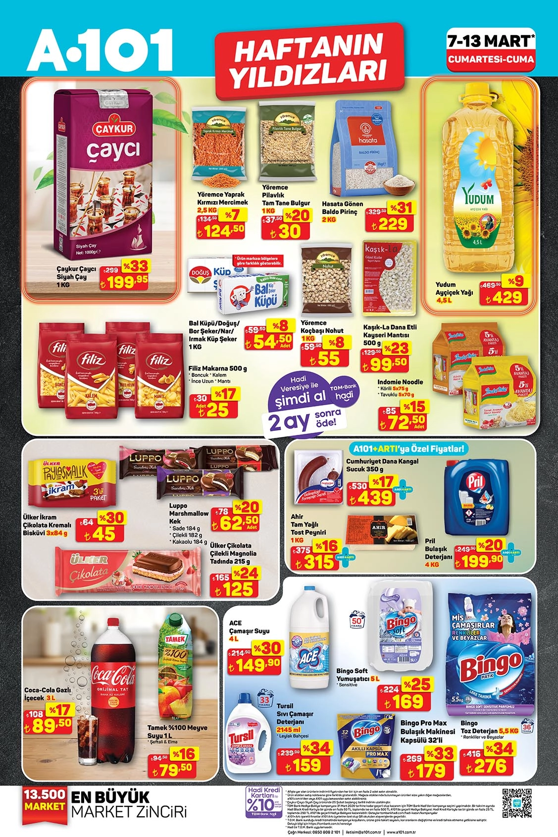 Bu haftaki A101 Aktüel listesini incelediğimizde, özellikle Çaykur Çaycı ve Bingo Deterjan ikilisinin piyasa ortalamasının oldukça altında olduğunu görüyoruz. Eğer evinizde bu ürünler bitmek üzereyse, 7 Mart itibarıyla mağazalara uğramanızı öneririz. Ayrıca A101+ Plus uygulamasını kullanarak bazı ürünlerde ekstra indirim tanımlatabileceğinizi unutmayın. Stoklarla sınırlı olan bu "Haftanın Yıldızları" kampanyasında popüler ürünler ilk günlerden tükenebilir, elinizi çabuk tutmakta fayda var!