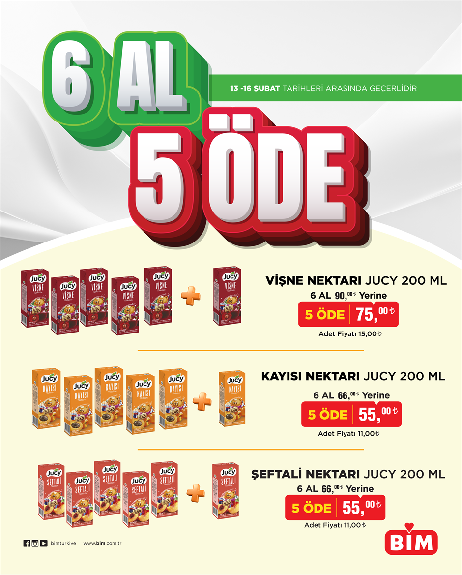 13 - 16 Şubat tarihleri arasında geçerli olan "6 Al 5 Öde" kampanyası kapsamındaki güncel fiyat listesi aşağıda sunulmuştur